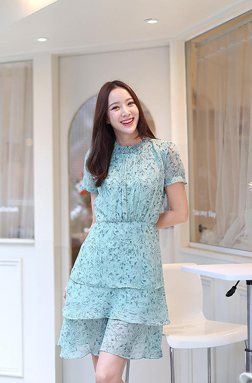 เดรสคอตั้ง รูดกลางอก และเพิ่มเลเยอร์สวยๆที่กระโปรงสามชั้น น่ารักสวยหวานถูกใจกันไปเลย ผ้าชีฟองลายสวยอย่างดี มีซับในซิปซ่อนหลัง